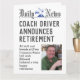 Retirement Card in the form of a Newspaper. Coach Driver retirement card. Your Name Choice and photo added as the person Retiring.