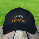 Embroidered Hats: Classic golden / black fashion baseball cap with text "COACH" & your "name" for the worlds best coach, sports, fitness, team building / family games