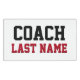 Add your name in red letters with a back drop shadow to personalize this name tag. the word COACH in black letters is also a template if you wish to change the team member title.