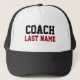 Add your name in red letters with a back drop shadow to personalize this cap. the word COACH in black letters is also a template if you wish to change the team member title.