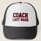 Add your name in red letters with a back outline to personalize this cap. the word COACH in black letters with a red outline is also a template if you wish to change the team member title.