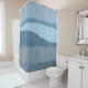 This shower curtain features abstract bands of blue and gray, resembling a coastal or beachy horizon. Perfect addition to a beach or blue theme room.