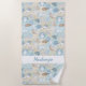 Coastal Aqua Blue Sand Seashells Personalized Beach Towel