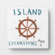 A cute, nautical sign for island excursions featuring a captain's wheel.