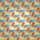 Summer fabric with beach chair and umbrella design. Muted, warm color palette of beige, blue, yellow and orange-red in an ogee shape that repeats seamlessly. Use for sewing clothing, crafts, quilting and decorating. Select from a variety of materials.