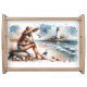 Coastal Beach Girl & Lighthouse Serving Tray