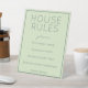 Display your 5 most important house rules to serve as visual reminders to your guests. Easily customize the template with your information. Font type, size, and color can all be changed to fit your needs. The background color can also be customized to match your decor.