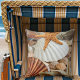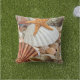 A modern design pillow featuring shells and starfish. Beautiful for a beach house or if you are looking for a coastal atmosphere.