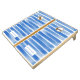 Natural Wood Cornhole Set, Royal Blue and Yellow bags