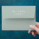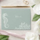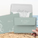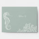Seaside ocean on the beach sage green wedding invitation return address personalized envelopes featuring hand drawn starfish and ocean corals, and a chic retro handwritten calligraphy script. +++++++ All colors are editable. +++++++++ Suitable for casual trendy beach coastal summer destination weddings.