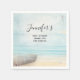 Baby shower or other event paper napkins with a beautiful rustic image. Subtle colors of light blue, sandy brown and gentle white. A beach scene with a boat on the shore with a fishing net hanging off the side. An elegant shabby look.