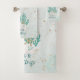Coastal, beach or tropical Christmas holiday towel set to decorate your bathroom or guest bath. The design features SEAS AND GREETINGS in modern calligraphy script typography in turquoise, aqua and teal watercolor with coral, starfish and sand dollars accented with faux glitter. ASSISTANCE: For help with design modification or personalization, color change, transferring the design to another product or if you would like coordinating items, contact the designer BEFORE ORDERING via the Zazzle Chat MESSAGE tab below or email makeitaboutyoustore@gmail.com.