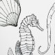 Coastal Black & White LIne Art Sea Life Pattern Wallpaper