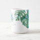 Bring ocean-inspired charm to your daily routine with this personalized coastal mug, featuring a hand-painted sea turtle surrounded by tropical monstera palm leaves in vibrant shades of blue, green, and turquoise. Designed for those who love the ocean and beach-themed decor, this mug adds a serene touch to any coffee or tea moment.