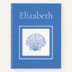 This beautiful coastal inspired notebook features a classic blue and white scallop seashell that you can personalize with your choice of name or special text.