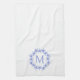 Coastal Blue and White Starfish Wreath Monogram Kitchen Towel