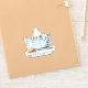 This cute coastal inspired vinyl sticker features a blue and white stripe beach tote bag with hat. Personalize with your choice of name or special text. Fun for gift bags and personalized party favors.