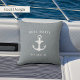 A perfect addition to your boat decor, our coastal throw pillow features a soft slate blue background with "life is better on the boat" in white typography, accented with ship's wheel and oar illustrations. Personalize the reverse side with your boat name and ship's registry with a nautical anchor in the center.
