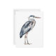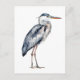 This beautiful postcard features a coastal blue heron bird in watercolor shades of blue and gray on a solid white background.