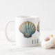 This beautiful personalized classic ceramic coffee mug features three coastal scallop seashells in soft watercolor shades of blues and tans. Personalize with your choice of name or special text. Great for personalized gift bags.