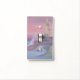 Light Switch Cover Plate Single Toggle with Coastal Bluff Lighthouse With Pink Sky watercolor painting artwork design illustration by TheFabricSeal print on demand shop at Zazzle.com #ZazzleMade https://www.zazzle.com/store/thefabricseal