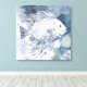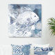 Coastal Boho Blue and White Fish Painting Canvas Print with muted aqua blue colors of the beautiful soft hues of the ocean and layers of texture and colors representing the relaxing feeling of tropical fish in the crystal clear water. This coastal boho wall art print in stunning blue and white hues is a piece of stylish beach decor, tropical wall art, coastal decor, perfect for any coastal home, beach themed house, and seaside cottage.