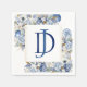 Coastal wedding dusty blue floral napkin with starfish and seashells.