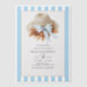Celebrate in style with this Coastal Chic Fall Birthday Party Invitation, featuring a watercolor straw hat adorned with soft blue ribbons and autumn leaves, framed by light blue and white coastal stripes. Printed on elegant vellum, this design captures seaside sophistication with a seasonal twist — perfect for fall birthdays, coastal events, or garden celebrations. Customize all text to create your ideal invitation for a charming and timeless gathering.