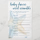 Unscramble the Baby Words! (Answer Key Below) Whimsical under the sea keepsake baby shower or gender reveal party game includes a casual hand-lettered script typography overlay. The collection features hand-painted watercolor seashells, starfish, a seahorse, and coral reef in complimenting shades. ANSWER KEY: Shampoo, Baby Gate, Blanket, One-sie, Diaper Bag, Stroller, Baby Monitor, Lullaby, Pacifier, Bottle For other colors or matching products, please visit the JustFharryn Zazzle store, or contact the designer, c/o Fharryn@yahoo.com All rights reserved. #zazzlemade