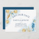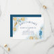 Romantic dusty blue and gold hand-painted nautical watercolor "under the sea" wedding collection. The design features seashells, starfish, a seahorse, and coral reef in complimenting shades of blue, gold, and off white with a splash of blue for a water effect. Your details in navy blue modern lettering are framed by the nautical watercolor garland border of elegant sea coral, shells and starfish.
