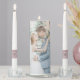 Elegant wedding unity candle set featuring your photo on the main candle and a hand painted abstract art background on the tapers. This design is perfect for a coastal or beach wedding.