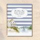 Introducing our Coastal Chic Rental Lake House Guestbook Notebook. Featuring watercolor illustration coastal cottage with navy blue stripes as background. Suitable for family lake house, Rental vacation beach house or coastal cottage.