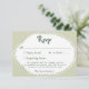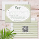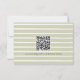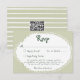 This whimsical coastal wedding response card with a QR code features a lace border and stylish sage green stripe background on the back. Perfect for a beach or California destination wedding. Created by Simply Farmhouse Press.