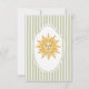 This whimsical coastal wedding photo save the date features a lace border, palm trees, and stylish sage green stripe background. Perfect for a beach or California destination wedding. A retro vintage sun is framed in a whimsical lace frame on the back. Created by Simply Farmhouse Press.