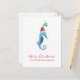 Coastal Christmas SeaHorse Care Giver Watercolor Holiday Postcard