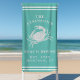 Coastal Crab Beach House Rustic Family Name Teal Beach Towel. Personalize this custom design with your own family name, year established, city and state. The perfect summer beach towels for your family lake house, cottage, or beach house.