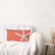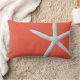 Coastal Dark Coral Tropical White Starfish Beach Lumbar Pillow