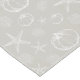 Coastal Fall table runner featuring pumpkin, coral and starfish seashells in white on a sand greige (between gray and beige) background. Perfect for beach themed autumn entertaining and Thanksgiving celebrations.