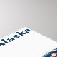 A stylized image of a coastal glacier in southern Alaska as seen from offshore. Small pieces of ice float in the water and the scene is reflected on the water's surface. Text reading, Alaska" also appears. You may easily remove this if you wish. Add your own additional text.