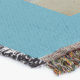 A quality printed throw has its advantages. This is a much finer weave throw than its loopier cousins, and though lighter, it is worth the investment for custom room accessorizing. The back is much prettier than the typical brown, and the fringe on the long sides very vivid, the selvage nicely done. Before photographing, I washed the throw in cold water, delicate, with a thicker woven throw the same size. On tumble dry low, this throw was dry in half the time as the other. This is a very practical quality if you use throws for furniture covers or to wrap up in frequently. The sleekness of the fabric makes it a great layer for accenting or protecting without the feeling of sitting on too much stuff. Perfect for napping or when you feel a light chill coming on. The color printing is beautiful and on this fabric, matched the design and color of my Photoshop image. This is an advantage for blending room fabrics and colors. The fringe on the short sides prints the colors from the design image and therefore varies from the side fringe. I streaked a white fractal line through the plaid pattern to give the illusion of weaving. This printed as crisp as an illusory thread, and put some white in the short side fringe, showing another advantage of print vs loomed- for artistic purposes, line lines, detail, and color integrity can be planned and preserved. My loomed throws have color limitations and more of a needlepoint texture. Print throws reproduce an exact image. The throw felt a little stiff straight out of the package, but this went away in the first delicate wash. Of course I searched the wash water for ink or bleeding and there was none.