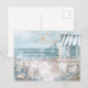 Escape to the serene beauty of the coast with our stunning watercolor postcard featuring a white and blue coastal landscape. Perfect for all beach lovers and sea enthusiasts. Let the calming waves and sandy shores bring a piece of the ocean to you wherever you are. Order now and let your mind drift away to the seaside paradise.