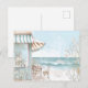 Escape to the serene beauty of the coast with our stunning watercolor postcard featuring a white and blue coastal landscape. Perfect for all beach lovers and sea enthusiasts. Let the calming waves and sandy shores bring a piece of the ocean to you wherever you are. Order now and let your mind drift away to the seaside paradise.