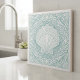 This tile showcases a beautifully detailed scallop shell encircled by swirling wave forms, coral textures, and tiny bubble motifs. The two-tone teal and ivory palette creates a striking block-print aesthetic that emphasizes the shell’s elegant shape. With its rich pattern and handcrafted feel, this tile works beautifully in beach homes, nautical décor themes, accent walls, backsplashes, and decorative coastal projects. Search ID1208 to see additional colors and design motifs in this series. Note: design may contain generative content