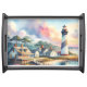 Coastal Lighthouse & Beach Cottages Scene Serving Tray