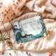 This coastal wedding design features a hand-illustrated lighthouse rising above dramatic ocean waves, framed by flowing watercolor textures in soft teal, seafoam, and deep blue tones. The composition blends nautical romance with an elegant, storybook feel, creating a striking yet refined seaside aesthetic.