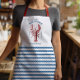 Coastal Lobster Beach House apron features a white background with a red watercolor style Maine lobster and navy blue rope as stripes. Personalize it with your family name and the date established in a classic navy blue font. Perfect for summer beach homes and waterfront cottages.