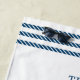 Coastal Lobster Beach House beach towel features a red watercolor Maine lobster with navy blue striped nots at each end. Personalize it with your family name and the date established. Perfect for summer beach homes, waterfront cottages and family vacations.