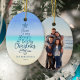 Coastal Merry Beachy Christmas Script Photo Ceramic Ornament
