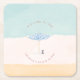 Bring a soft, coastal feel to your table with these personalized paper coasters. Featuring a watercolor blend of sky, sea, and sand, the design is finished with a delicate striped umbrella and a small dog resting along the shore.
