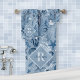 This marine underwater pattern in classic shades of blue features a variety of sea creatures such as sea horses, jellyfish, coral, starfish, seaweed, and shells. Add a monogram to personalize this bath towel set for your own home or for a gift.